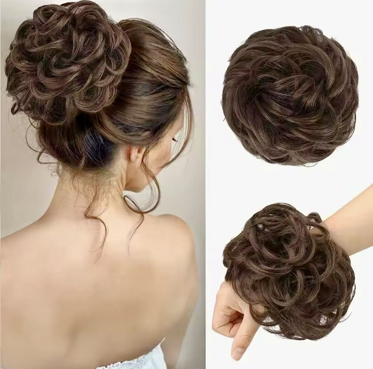 -Dimensiune: 13 cm -Culoare: Saten Deschis -Gramaj: 38 g (este foarte usor; are o greutate ideala pentru purtare zilnica) -Este prevazut cu un elastic care se prinde foarte usor si care este comod de purtat -Se aplica la baza parului prins in coada/coc, fiind foarte usor si confortabil. -Este confectionat din fibra termo-rezistenta de calitate superioara