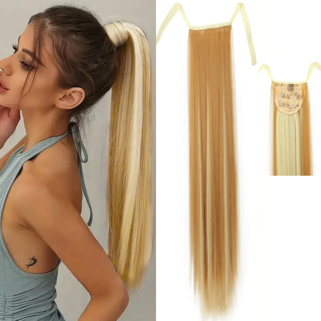 -Lungime: 85 cm -Culoare: Blond Inchis Cu Suvite Platinate -Gramaj: 120 g -Este prevazuta cu 2 panglici laterale si cu un clips de siguranta ultra rezistent -Extensia este coafabila (la temperaturi de pana in 160 grade Celsius) -Se aplica la baza parului prins in coada, fiind foarte usoara si confortabila. -Este confectionata din fibra termo-rezistenta de calitate superioara