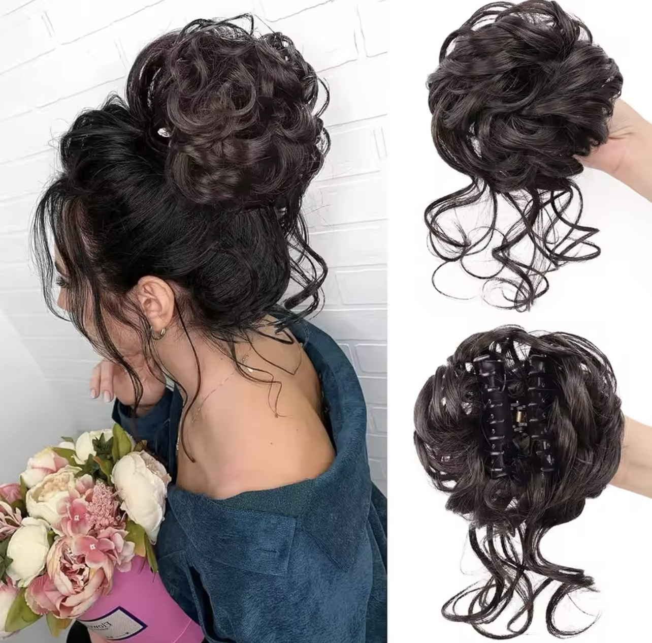 -Dimensiune: 13 cm -Culoare: Saten Inchis -Gramaj: 60 g (este foarte usor; are o greutate ideala pentru purtare zilnica) -Este prevazut cu un cleste care se prinde foarte usor si care este comod de purtat -Se aplica la baza parului prins in coada/coc, fiind foarte usor si confortabil. -Este confectionat din fibra termo-rezistenta de calitate superioara