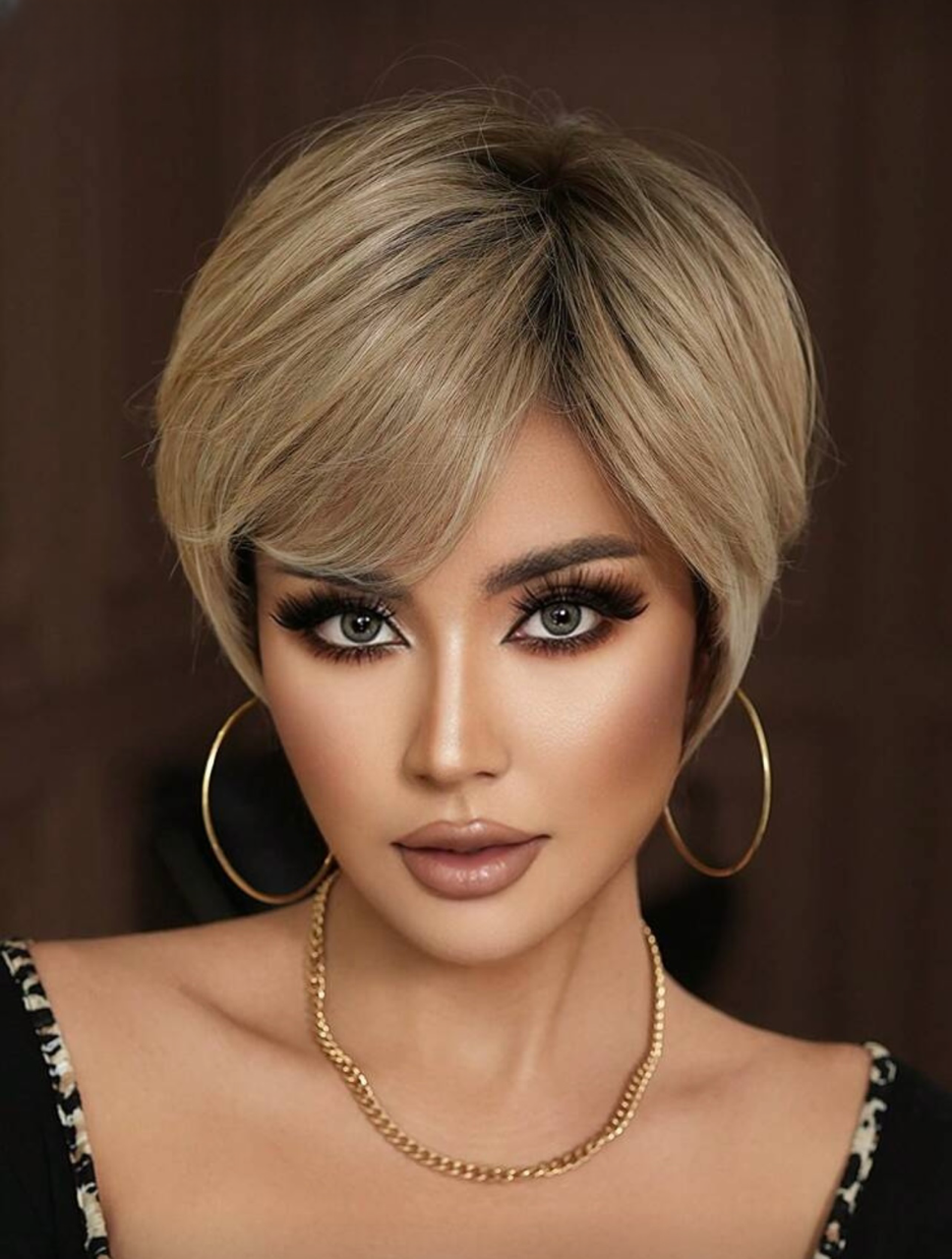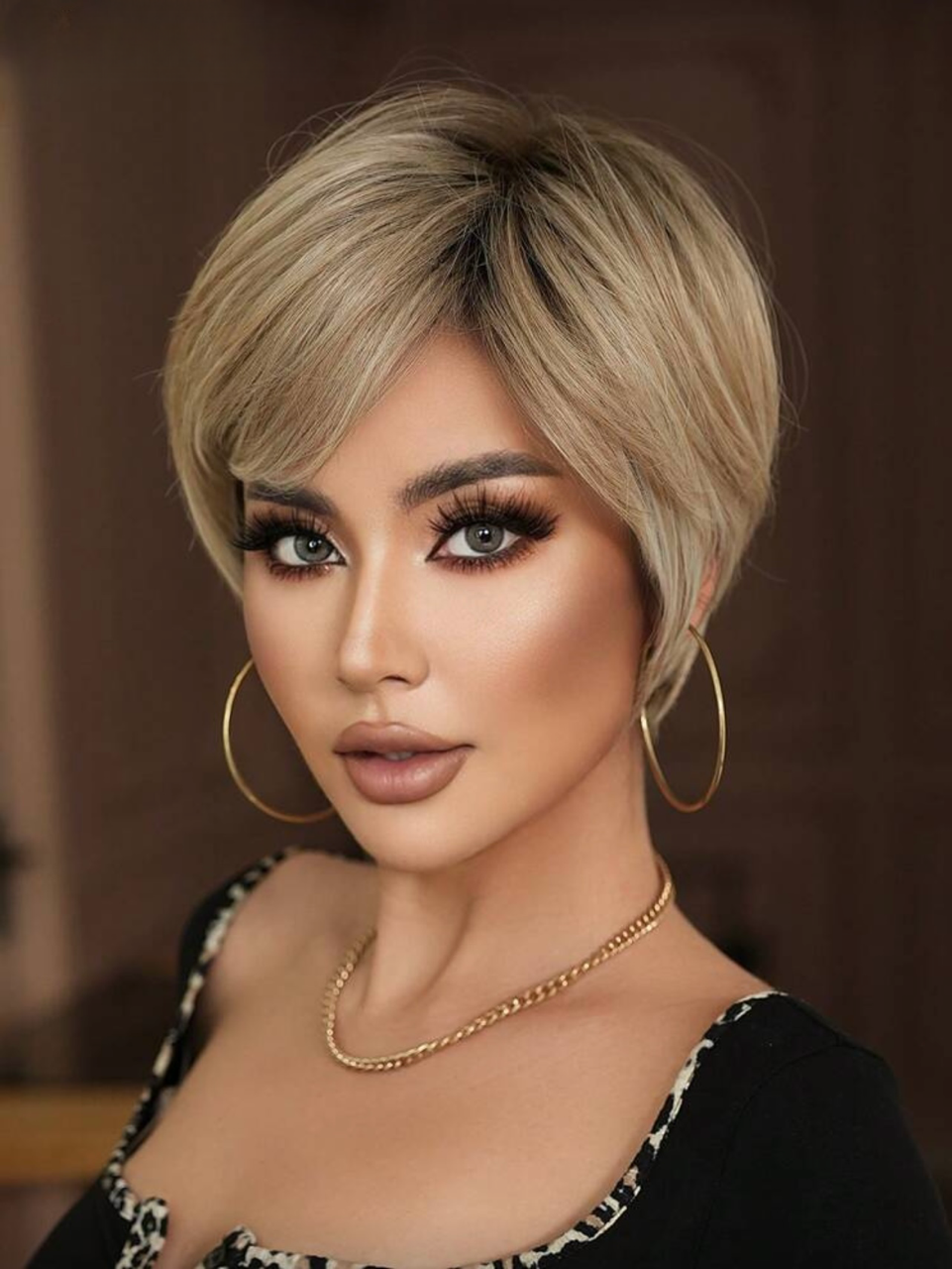 Peruca C639 Blond Cenusiu Cu Breton Blonda Scurta Filata