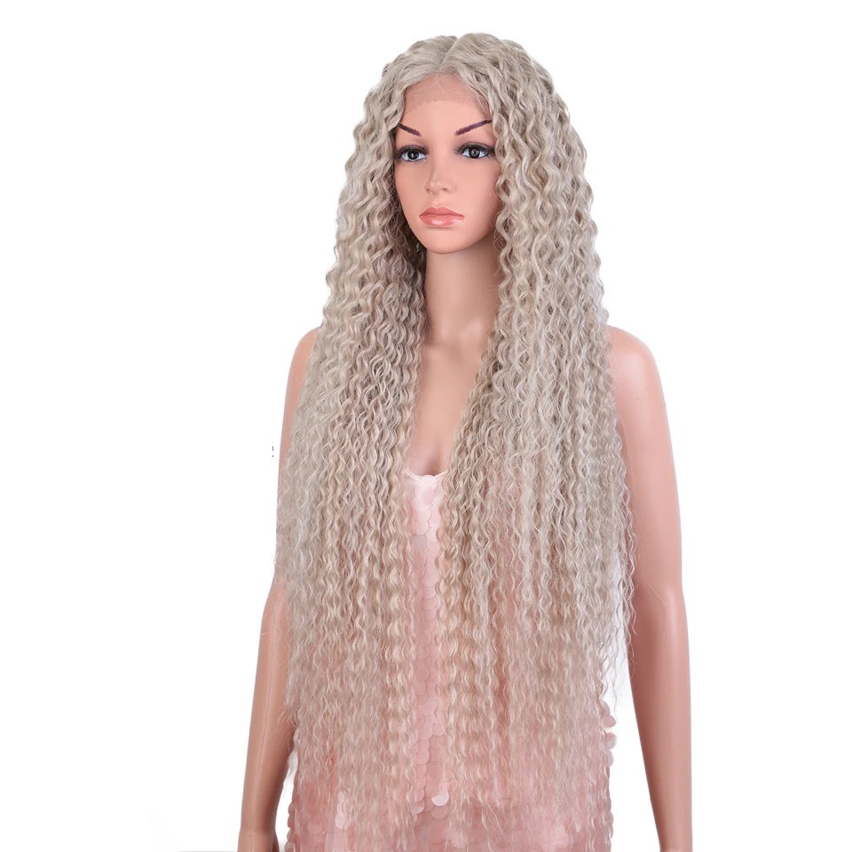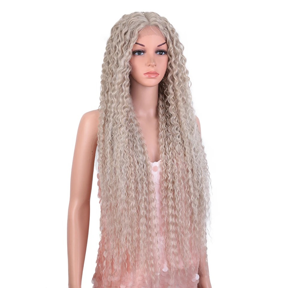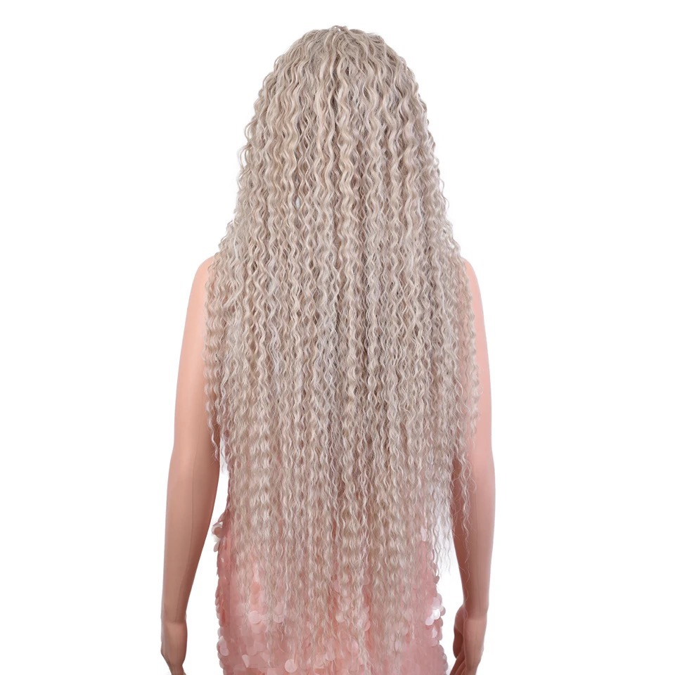 Peruca C1189 FRONT LACE Blonda Cenusie Gri Cu Suvite Afro Creata Ondulata