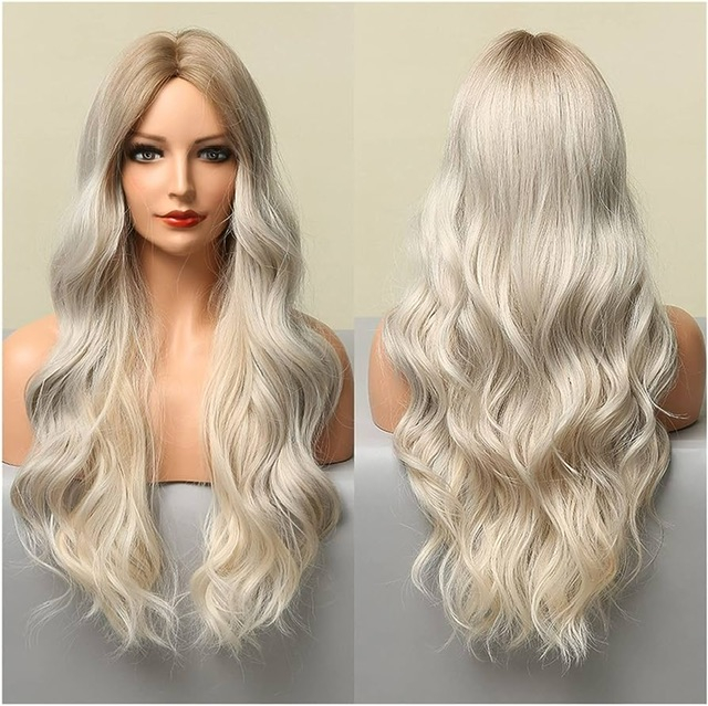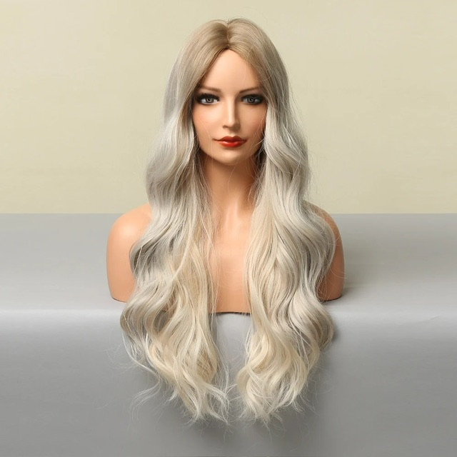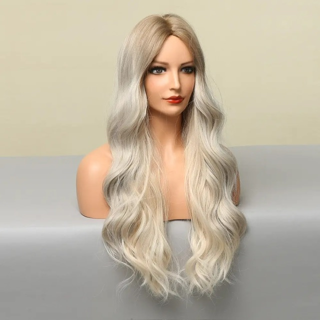 Peruca C242 Blonda Ombre Gri Platinata Silver Ondulata
