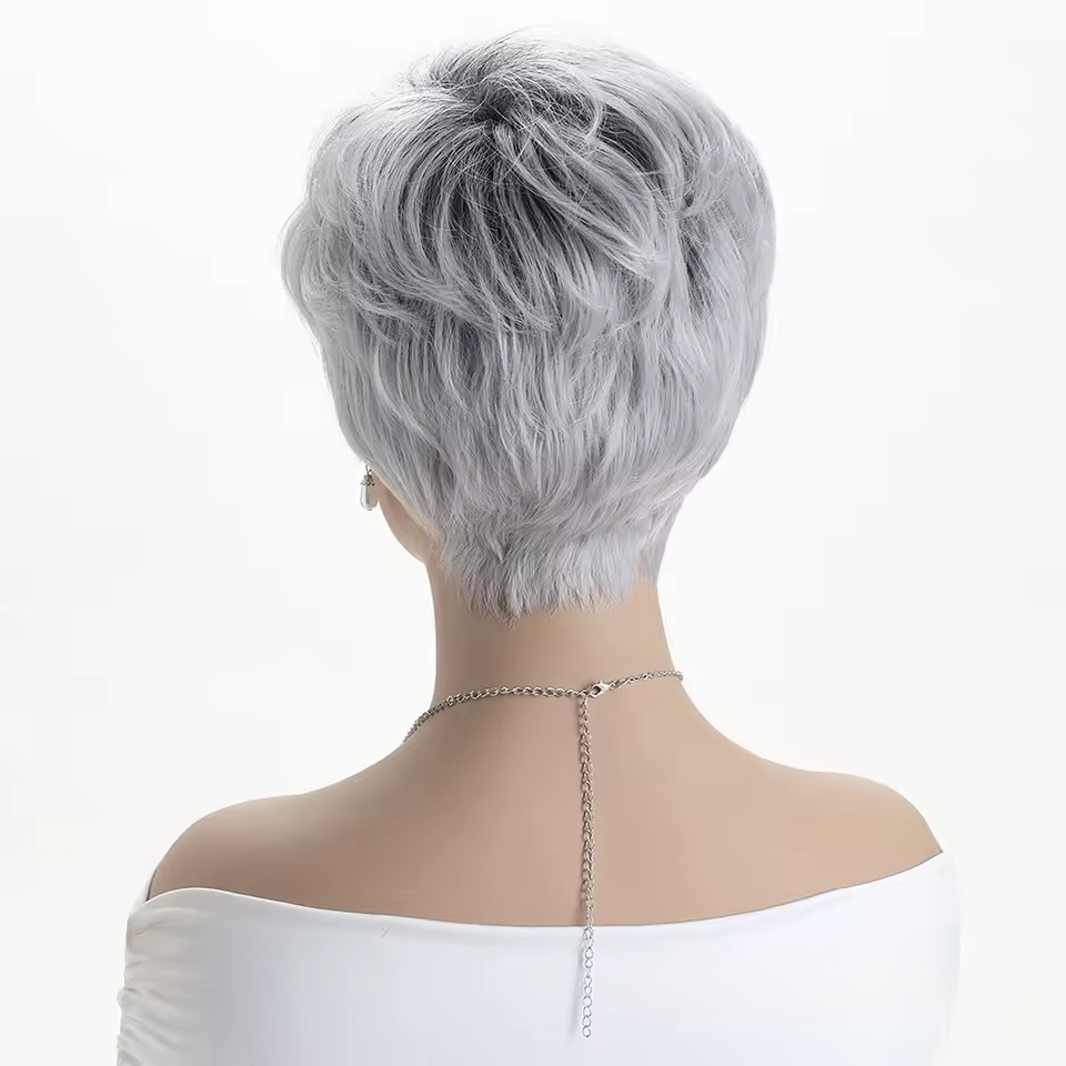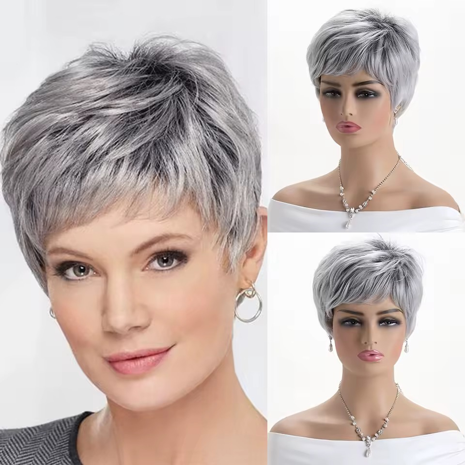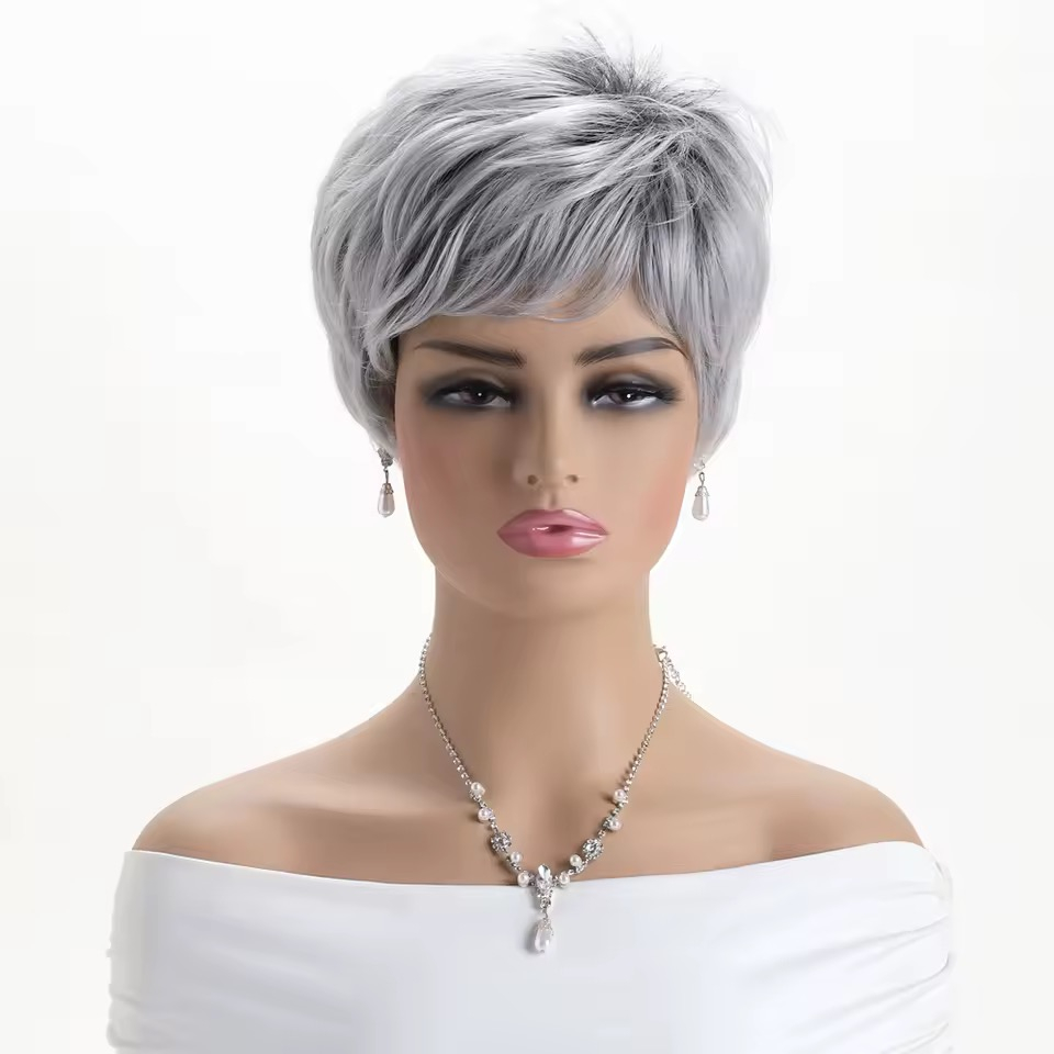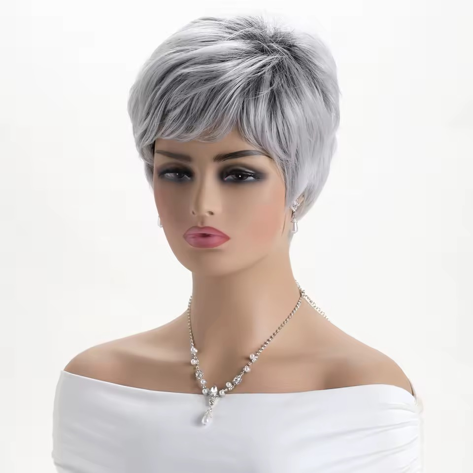 Peruca C1712 Gri Grizonata Cu Breton Baza Inchisa